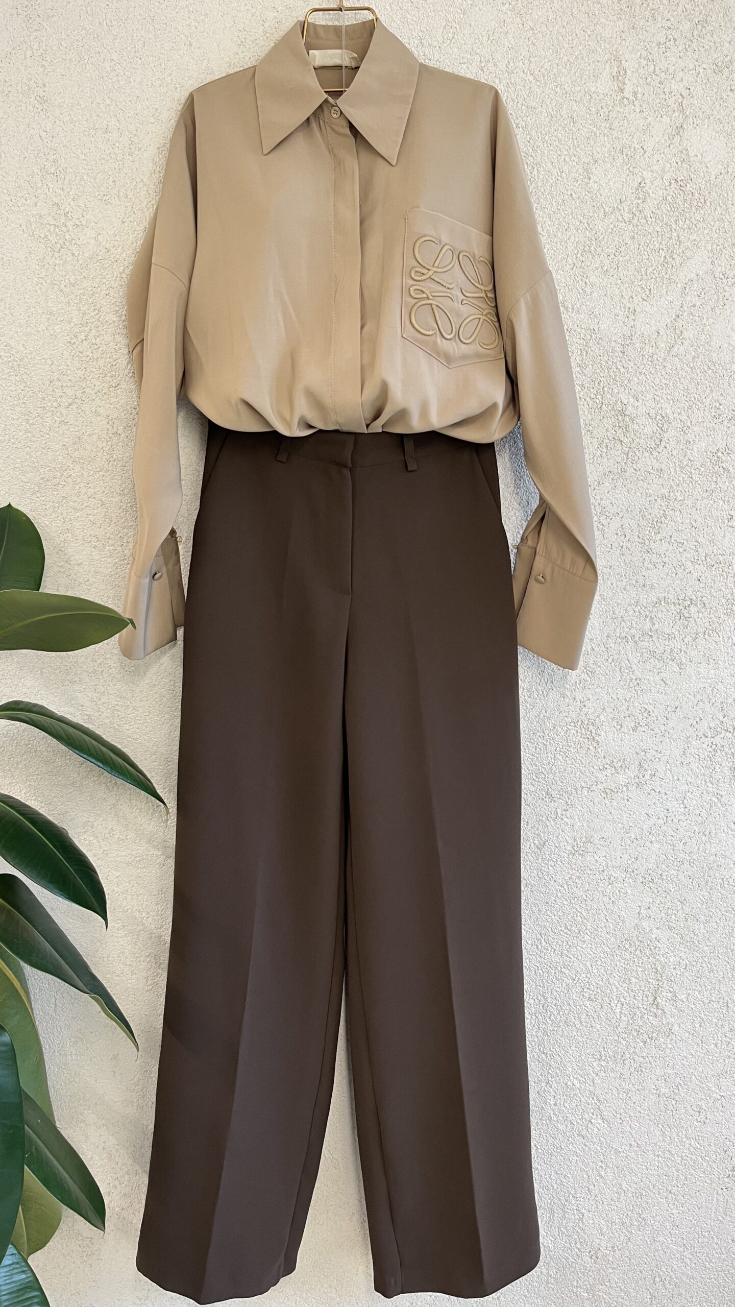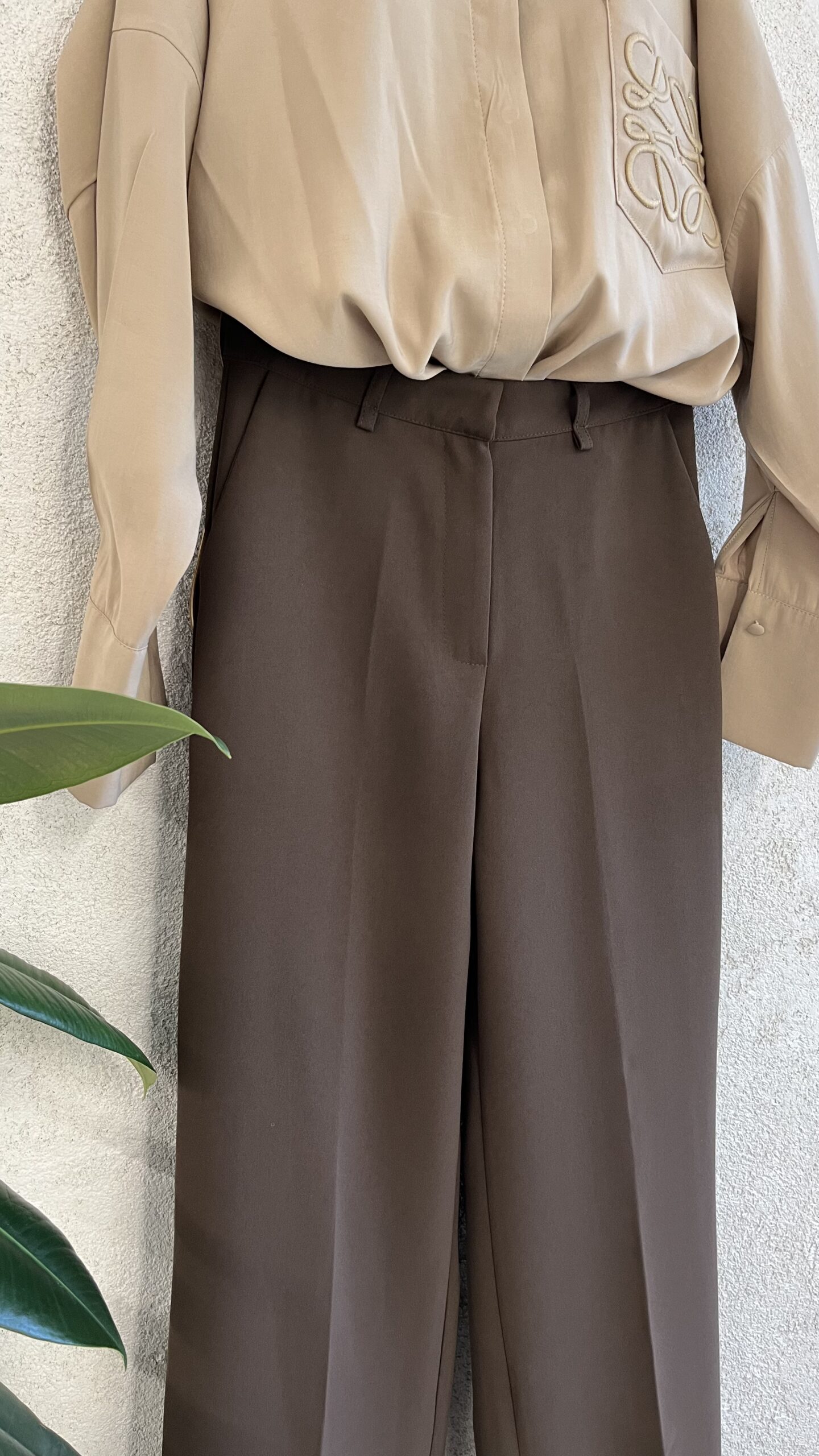 • Kahverengi pilesiz palazzo pantolon.