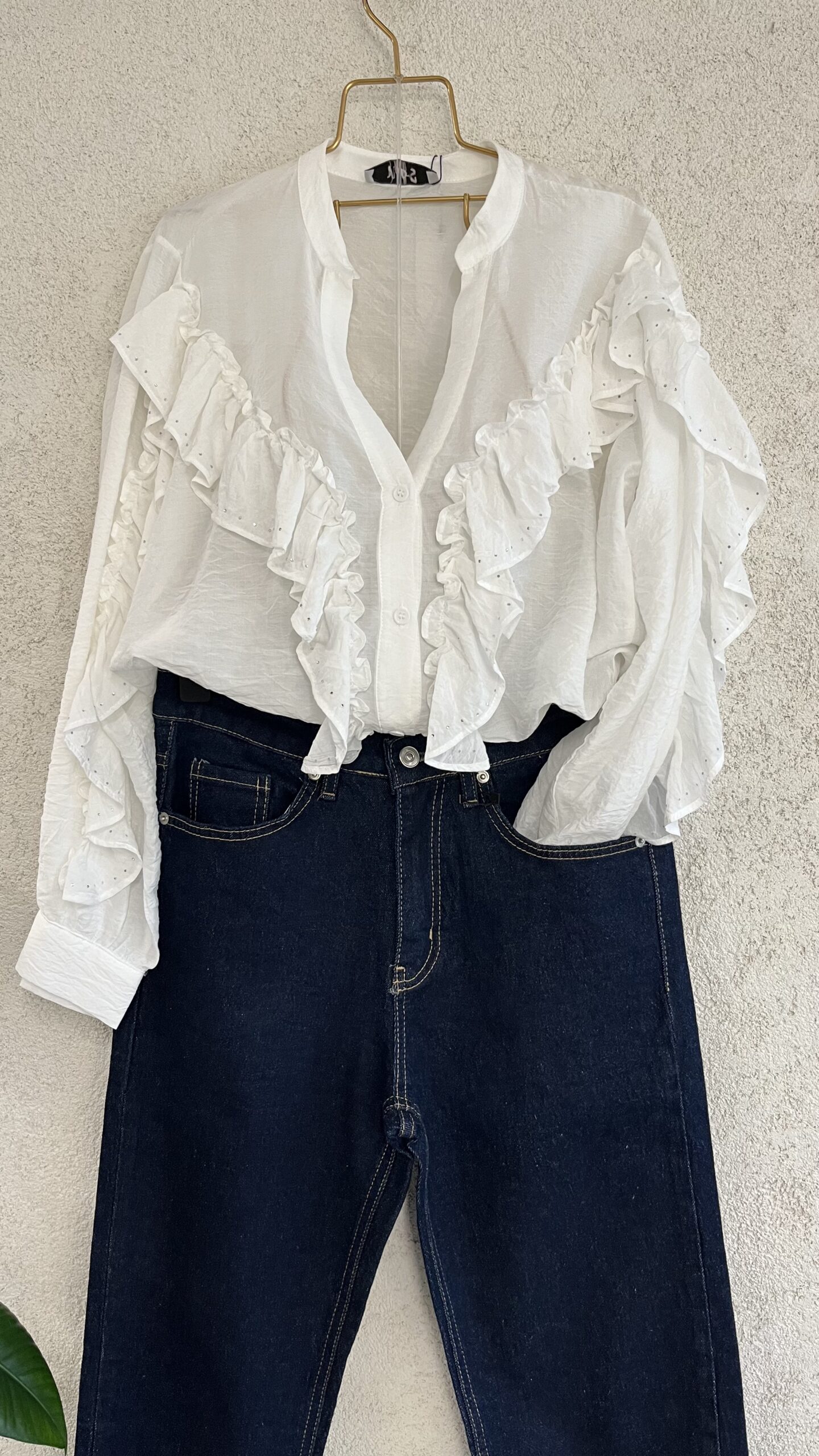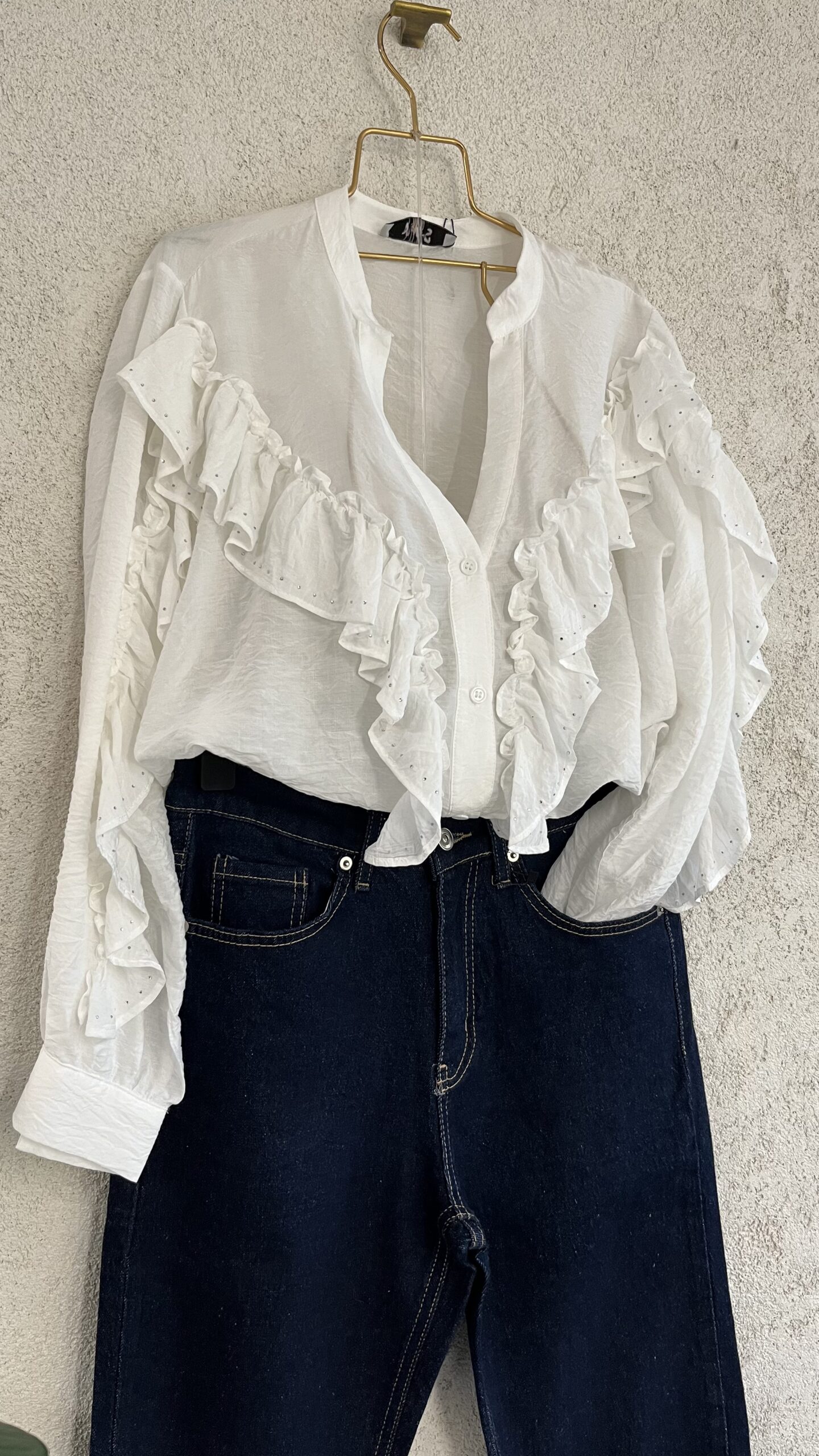 - Taşlı tasarım model gömlek beyaz renk.