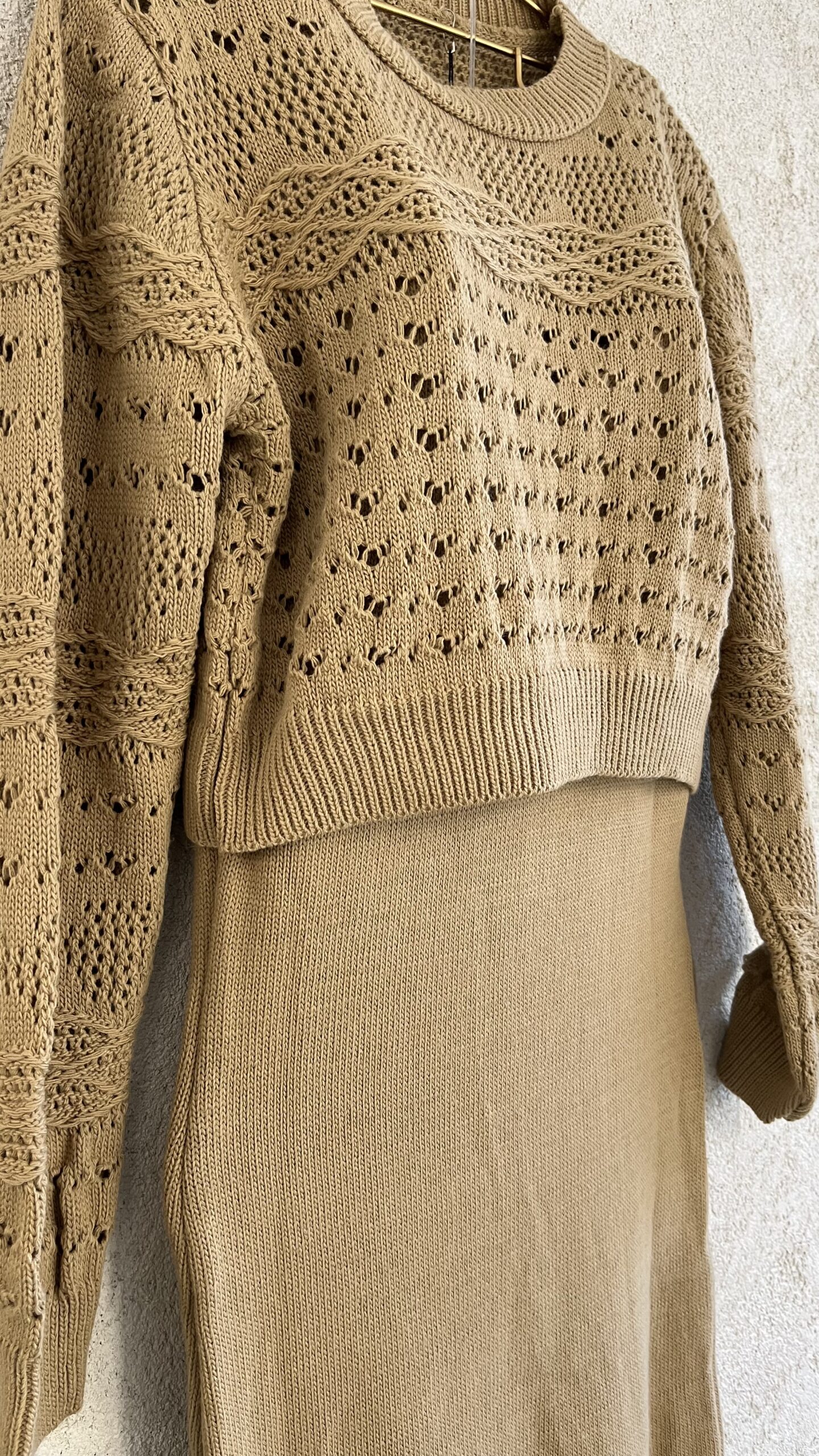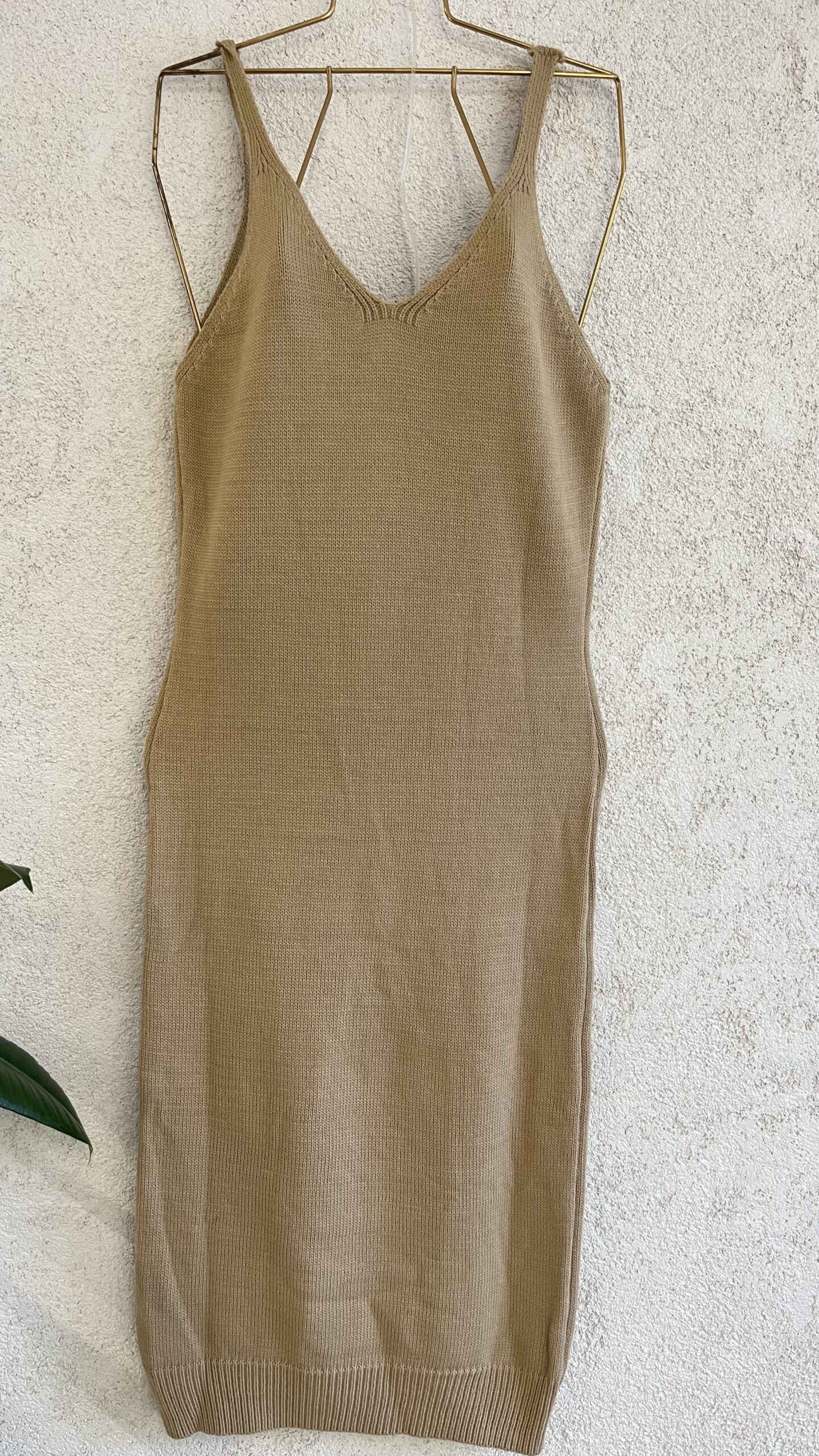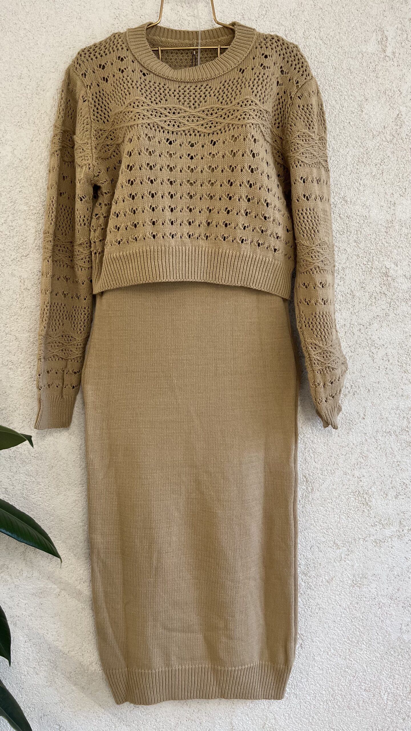 • Triko elbise takım ( kazak ve askılı elbise ) açık kahve.