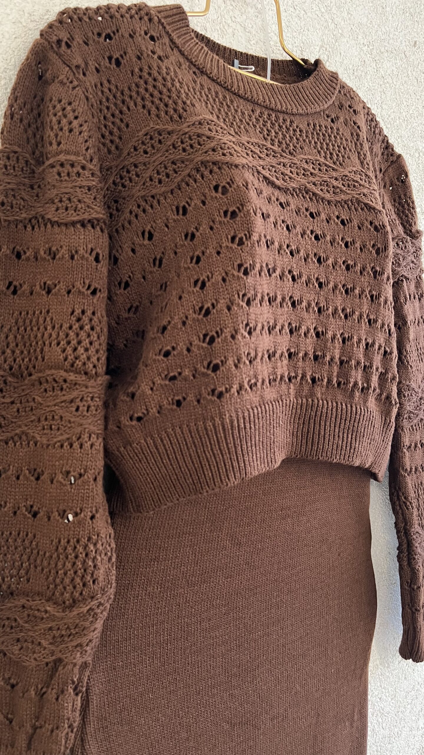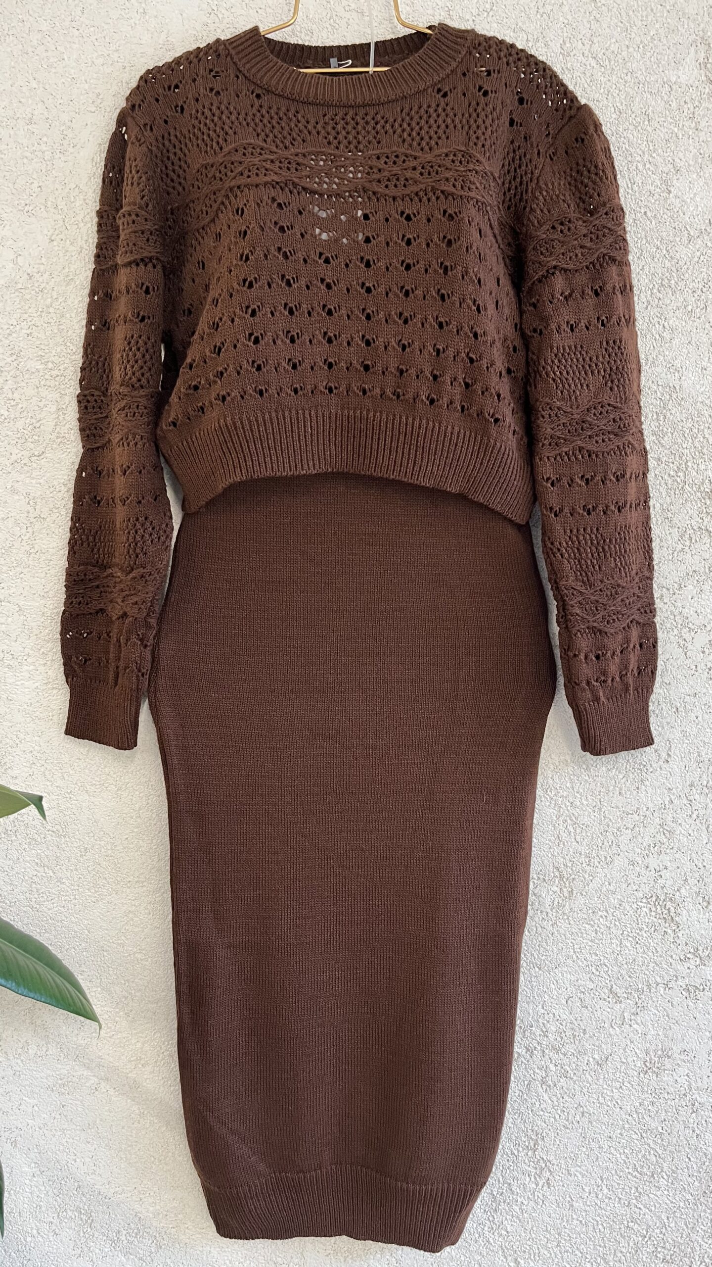 - Triko elbise takım ( kazak ve askılı elbise ) koyu kahve.